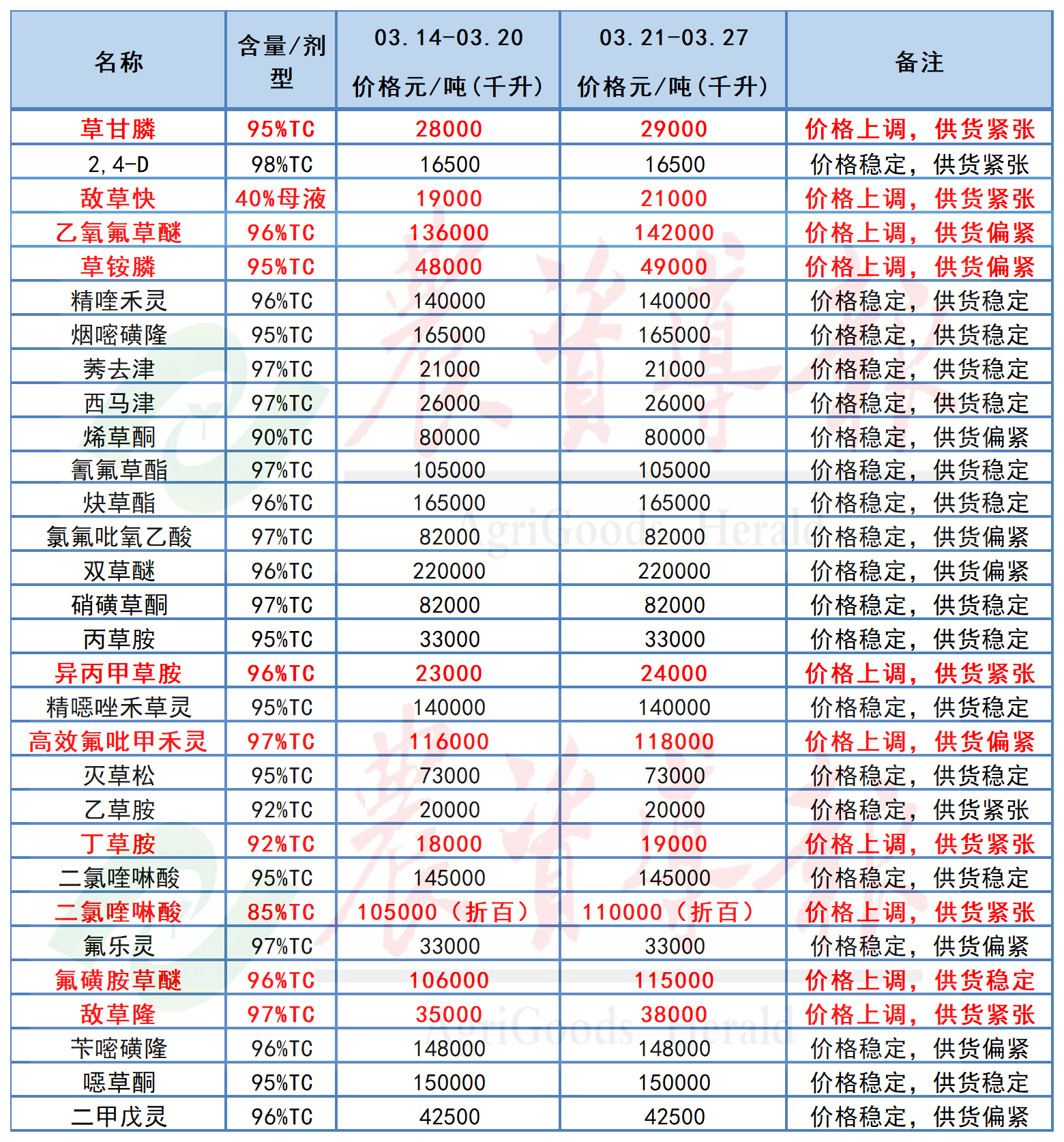上周国内农药市场整体交投活跃,行情延续前期强势走势。受成本端持续上行带动,市场涨价情绪进一步传导。上游企业提价意愿明显增强,主流产品价格普遍走高;下游备货积极性显著提升,终…