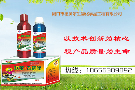 药剂效果不受低温影响,耐雨水冲刷,持效期长,田间控制害螨50天左右。杀螨谱广, 可有效防治果树、花卉、蔬菜、棉花等作物上的所有害螨。