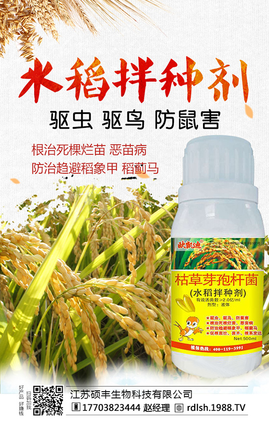 6、苗床土壤消毒用3.2恶甲水剂300倍液喷洒,用广灭灵水剂浸种24-48 h或于1叶1心期喷洒500~1000倍液。水稻秧苗1叶1心期,每盘用15%立枯灵液剂0.9 g加水1 L喷洒。用70%敌克松粉剂500倍液或1%硫酸铵进行喷雾,并注意保持床土湿度,以有效防止立枯病的危害。在秧苗发病初期,施立枯清每平方米用药1~1.5 g,对水均匀喷在苗床上。